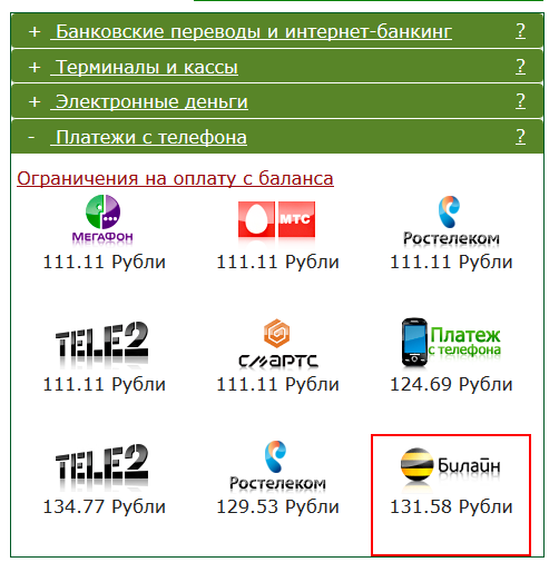 Во-вторых, выберите удобный способ оплаты. Предложены 4 основных типа: