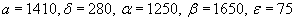 a=30, σ = 0,6; α= 29,1; β = 30,6; ε = 0,65.