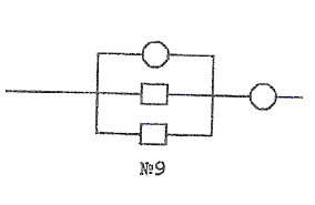 Задача 3076. Вычислить надежность схемы, полагая, что надежность круглых элементов равна 0,9, прямоугольных – 0,8 и треугольных 0,75