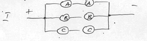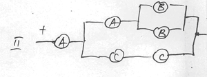 Задача 3143. Электрическая схема составлена в соответствии с рисунком. Элементы A,B,C выходят из строя соответственно с вероятностями p1=0.3, p2=0.4, p3=0.2. Найти вероятность того, что схема выйдет из строя.